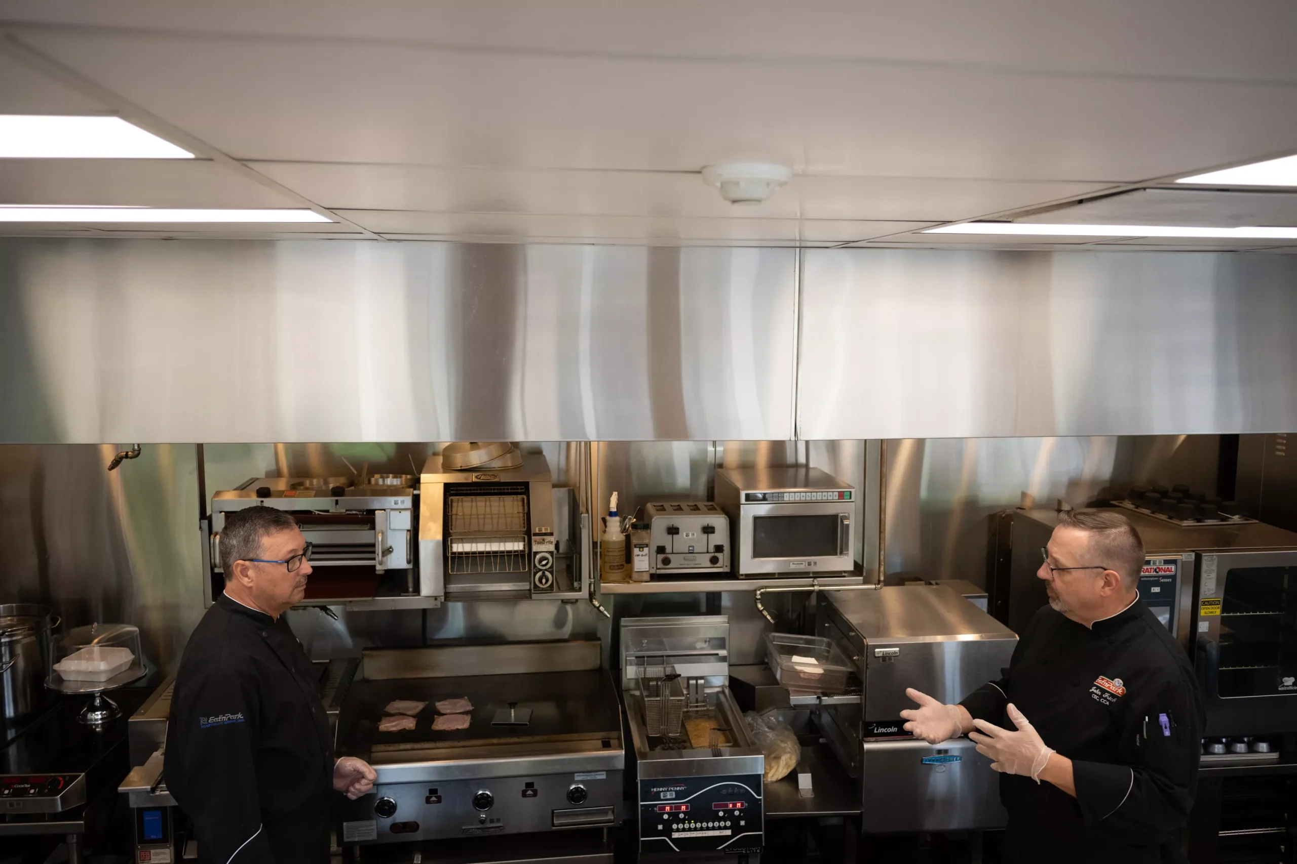 Though not set up exactly like Eat’n Park’s usual back-of-house, the space contains all the same kitchen equipment “so we can work through it all,” Frick tells City Paper. “It has to work within the system.”