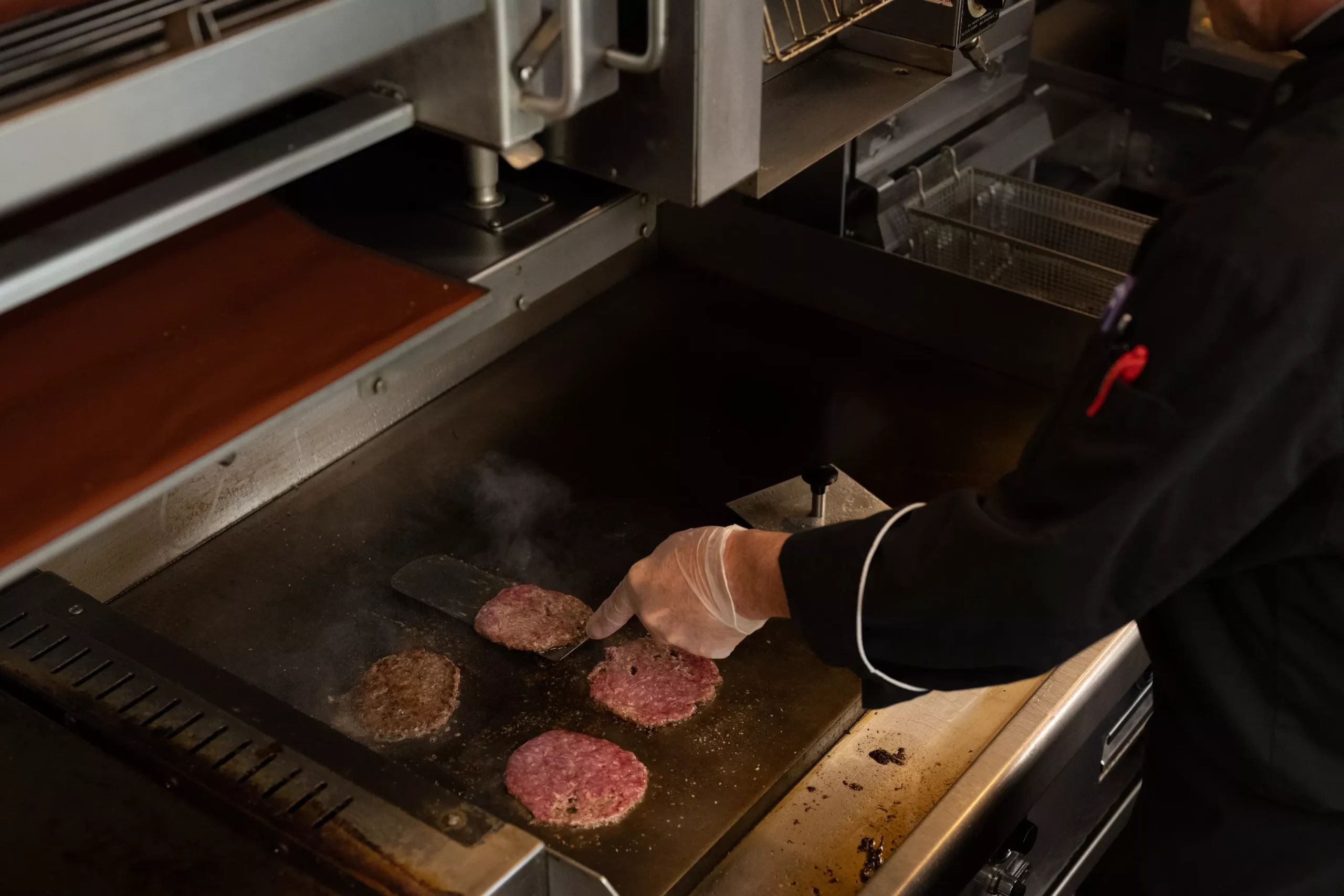 “We’re looking to get that balance of a nice sear on the outside of it, but still a good meaty burger feel when you get it,” Frick says, describing the new burgers as cooked medium to medium well.