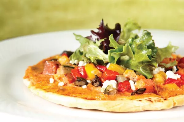 A buffalo blue-cheese burger, alas, did not deliver the bold flavors promised by its name. While the patty was big and beefy, a house-made topping that combined buffalo sauce and blue cheese managed to mute the strong, distinctive flavors of both its main ingredients. And then, most of the sauce smooshed out of the sandwich when the top bun was applied to the patty, depleting even further its ability to spice up any given bite. A tomato-basil soup served alongside was excellent, however, deriving depth and complexity from a simple combination of sweet tomatoes and peppery herbs.