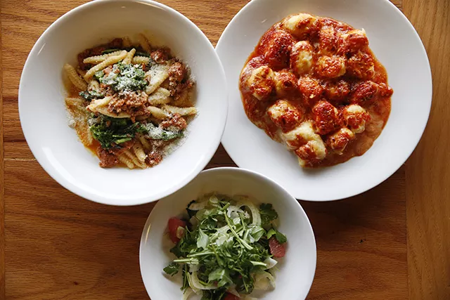 Family-style dining felt like an obvious choice, and my table ordered a few dishes to share: fennel salad, gnocchi, cavatelli with sausage, the house meat combo, and reggiano risotto.
