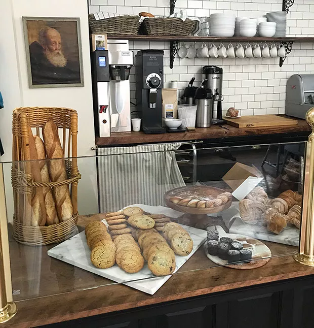 Inside, the counter boasts a variety of baked goods from sea-salt chocolate-chip cookies, croissants (buttery and perfectly flaky), baguettes, scones and, of course, madeleines. Drip coffee and hot chocolate are also on offer, and the menu will see day-to-day changes and seasonal additions. A limited selection of sandwiches and salads is in the works.