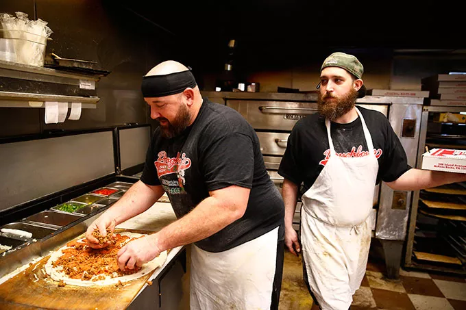 The crusts at Doughboy’s Pizza are colossal. Maybe it’s obvious from the name, but the McKees Rocks pizzeria sets itself apart with a unique dough and a meticulous, semi-secret process of preparation. The result? Pizzas with eye-popping, formidable crusts that resemble few other pies in the city.