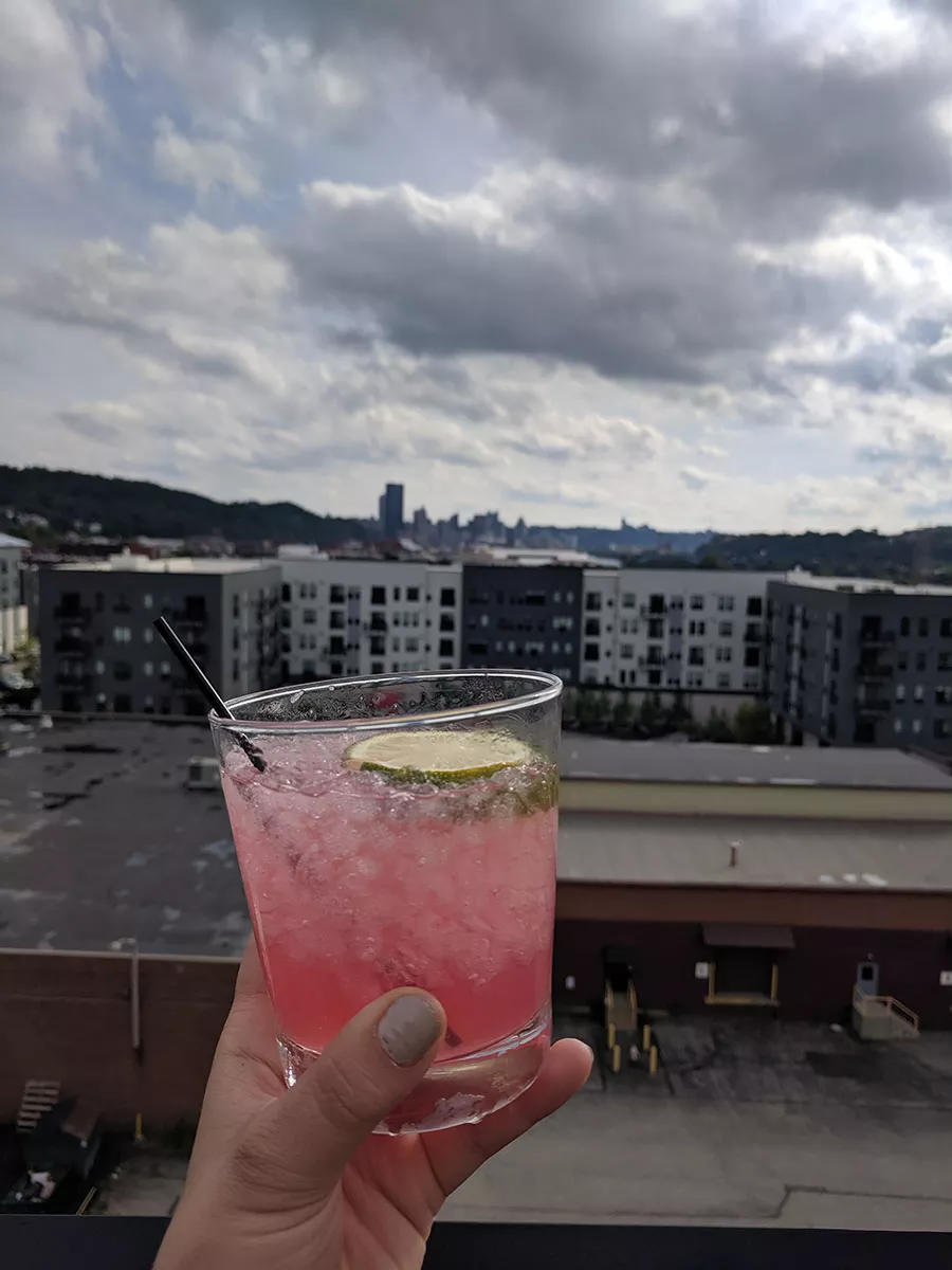 Over Eden is located on the top floor of the TRYP hotel in Lawrenceville. Huge, garage-door-style windows line the walls facing Downtown. On dry days, the windows are raised, adding another open-air feature to the bar. Outside, the rooftop bar delivers a stunning view of downtown Pittsburgh, Lawrenceville, Millvale, and the Allegheny River.