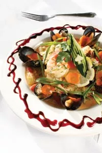 In practice, this means that, while an ingredient may recur in more than one dish, the preparations themselves vary widely, from ultra-traditional offerings like crab-stuffed shrimp to au courant updates like duck with orange-apricot balsamic glaze. Such an approach can be tricky to pull off well.