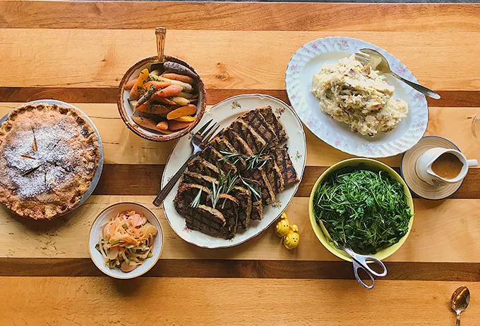 The Q-Time menu is available to a party of four to six every night of the week, by reservation only. For $130, the party is treated to a meal reminiscent of Mahaney and Scratch chef Chris O’Brien’s own family meals: soup, followed by meatloaf and side dishes — potatoes, gravy, Brussels sprouts, roasted carrots, greens, and pickled vegetables — and for dessert, a whole apple pie.