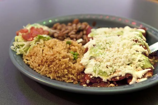 Considering the popularity of Taco Time, we assumed that Silvi’s tacos were a must-try, but we were underwhelmed by the ones we ordered. The menu offered only steak, chicken or pork, while a sign on the wall noted specials of chorizo and tongue. The tortillas, apparently made from white corn, had great texture, hearty yet tender, but very little flavor. The meat within was overpowered by heaps of shredded lettuce, pico de gallo, guacamole, sour cream and queso fresco. The pork was shredded and, when separated from all the taco’s other fillings, had pretty good flavor; it’s likely that, served with just some diced onion, cilantro and a lime wedge, it would have been more of a standout. Crumbled chorizo had a bit of kick, but was simply too meager to compete with all those toppings. The tongue taco we ordered never arrived.