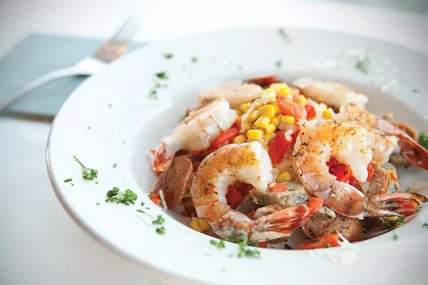 Ordering Southwestern fare at a restaurant that doesn’t specialize in it is always a risk, but Angelique took it for shrimp and corn grits with andouille sausage, sweet red pepper and spicy pepper-jack cheese. Small bits of the cheese appeared to have been stirred in after the dish was cooked, and they concentrated delectably in the bites where they melted. The grits had a texture that was more polenta than Cream of Wheat, and the pleasingly plump shrimp, sweet corn, bright red pepper and spicy sausage brought complexity to every mouthful. Only parsley seemed like an outlier in this tasty dish.