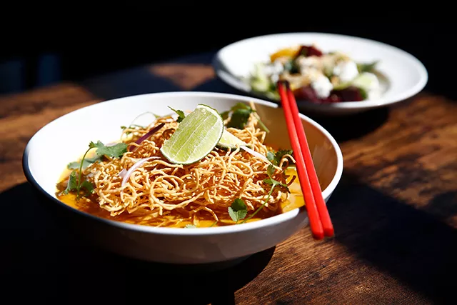 Following the first course triumph came a Northern Thai dish, khao soi, ornately topped with the trademark crunchy noodles. The foundation was all there — a rich, creamy curry, touch of cilantro, and fresh lime — but I longed for a bit of salt or splash of fish sauce, something to cut through the thick coconut milk.