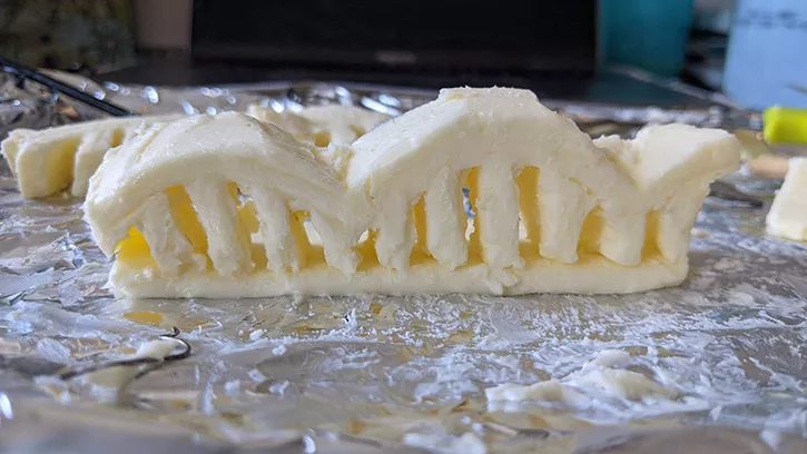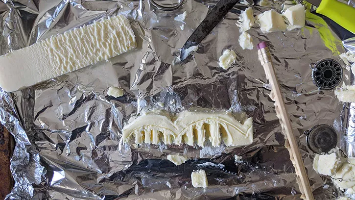 It was messy work. The butter clung to everything, and my knife handles, hands, and table were soon covered with melting butter. (It wasn’t until later, at the suggestion of Pittsburgh City Paper Senior Writer Amanda Waltz, that I realized I should have tried carving it in my fridge.)