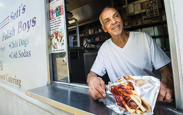 The Polish Boy transcends the already-sacrosanct word “sandwich,” becoming in Cleveland an “experience” for all ages. It’s messy, and often requires at least a half-day off work simply to deal with the post-consumption buzz alone. Shout out to Seti’s, where we eat Polish Boys at a truck on the side of the road and love it. For you uncultured Pennsylvania hillfolk, a Polish Boy is a sausage topped with coleslaw, fries and barbecue sauce, all tucked neatly in a bun. It’s beautiful. And not to get off-topic, but we’ve already got the excellent Panini’s, so we don’t need no rip-off Primanti Bros. to come around here thinking they’re hot shit n’at. Pass the napkins, please.