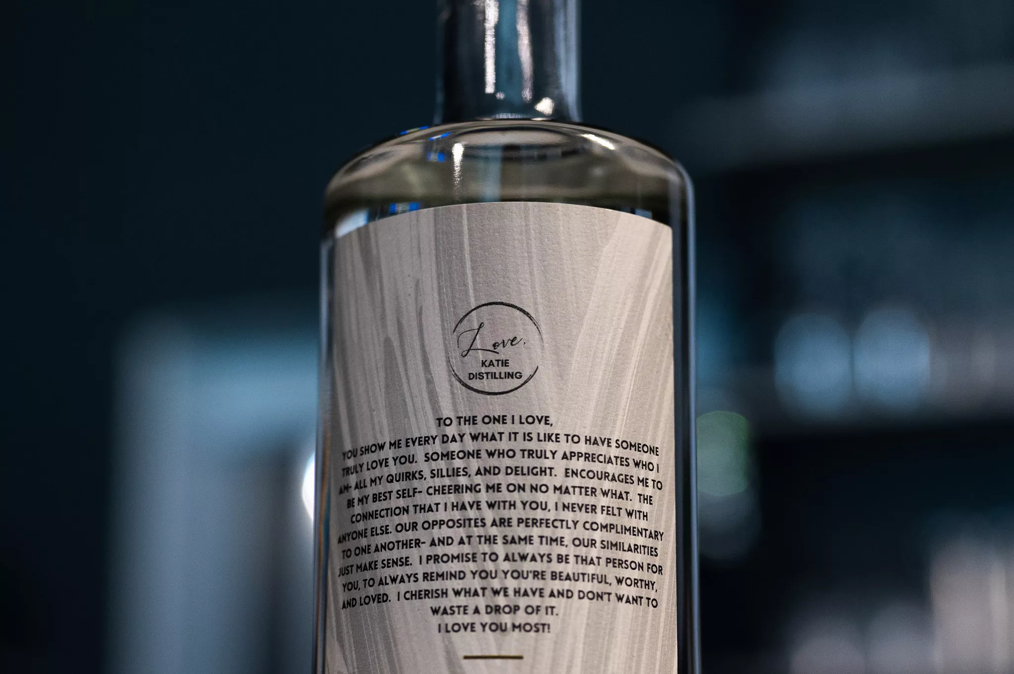 “It’s called Love, Katie Distilling because it’s really a love letter,” Sirianni says. After a relationship ended, “I put myself out there,” she says, “more for friends than a relationship…” But eventually, “I met my now-girlfriend. So it’s my love letter to her, but it can be your love letter to anyone.”