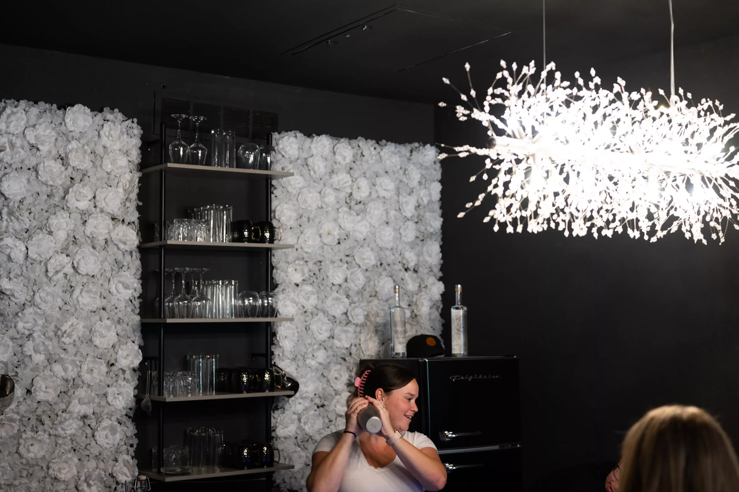 “It’s going to be a really premium product because I can’t put it on my shelf if it’s not a good product,” she explains. “But it’s even more about the atmosphere. It’s going to be speakeasy-style, so we have dark walls, dark ceilings, crystal chandeliers coming down, some really cool egg-shaped chairs, marble look on the counters and tabletops, with all ‘40s and ‘50s music.”