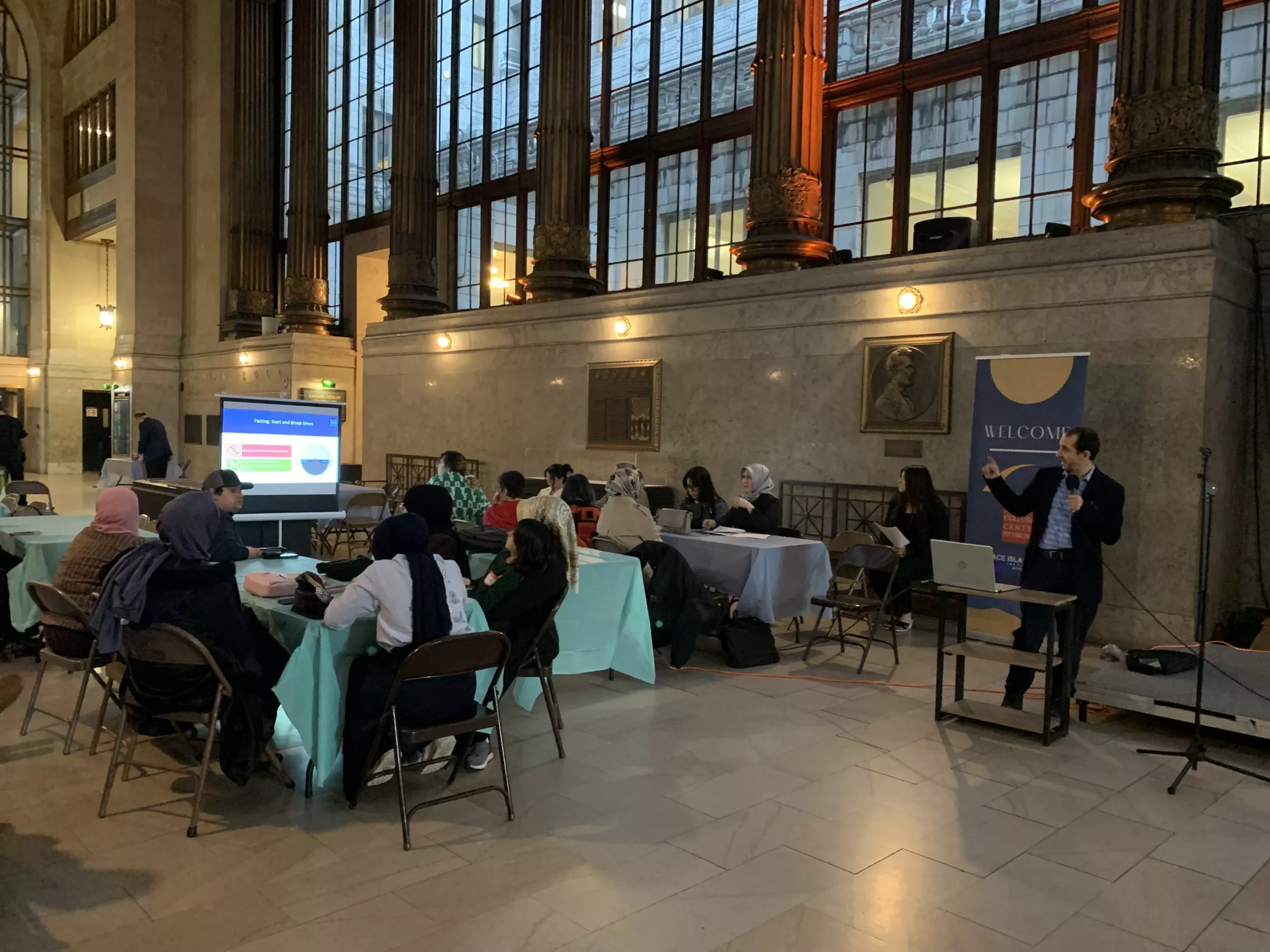 Gurkan from Peace Islands Institute gives a Ramadan presentation at the Pittsburgh City Hall iftar dinner, March 18, 2025. Credit: CP Photo: Rachel Wilkinson