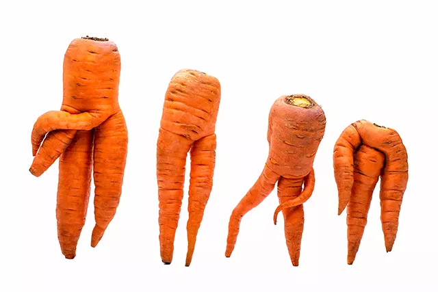 According to the Department of Agriculture (USDA), Americans waste 30 to 40 percent of their food supply each year (in 2010, it was 133 billion pounds totaling $161 billion). Researchers at the USDA have also found that those who eat more fruit and vegetables are the most wasteful. Hmurovic says that produce waste happens at every stop along the chain, from grower to retailer to consumers. Sometimes growers won’t pick ugly produce because they know it won’t sell. Grocery stores might not put it out for the same reason. And even if the shopper buys the ugly produce, it might still rot before it’s used.