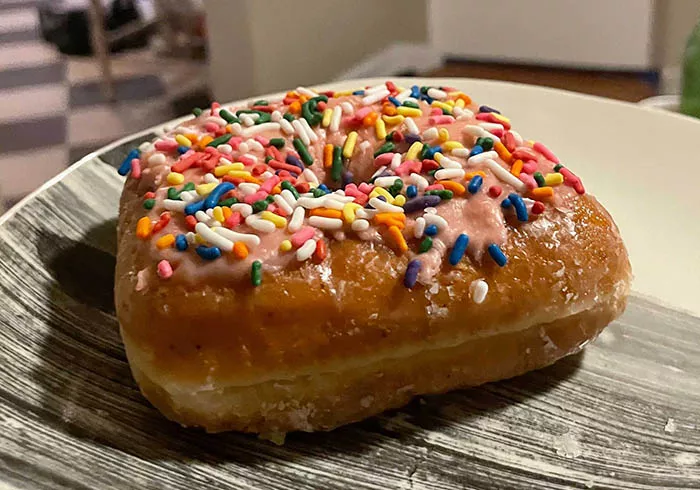 I started with the black and gold number, and it was loaded with sugary icing that caught me off guard at first. I knew it would be sweet but I didn’t know how sweet. The dough itself is perfectly balanced and light, which was really the most important thing for me. It gives that classic donut feel that I had been craving.