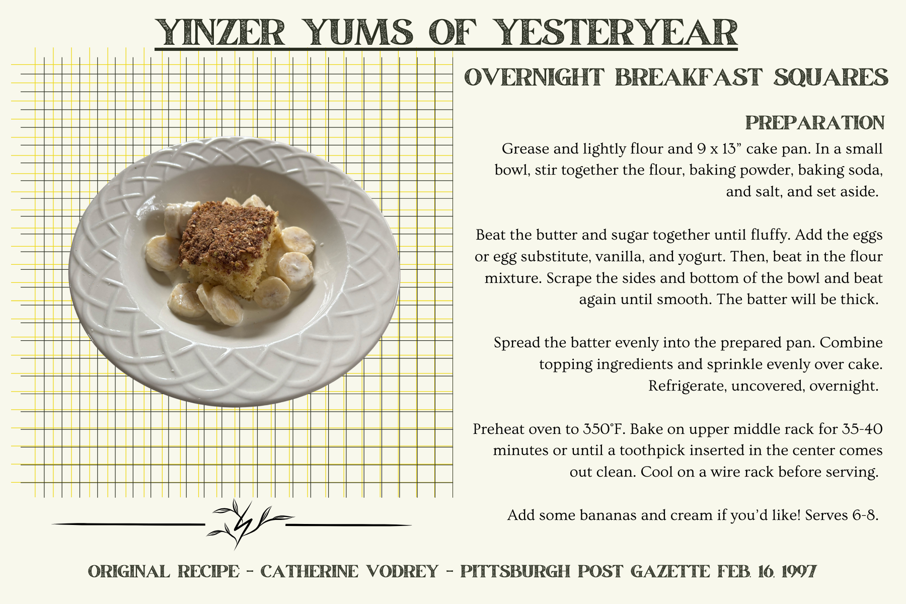 Here’s a printable copy of this lovely little breakfast cake that we’re not calling a cake: