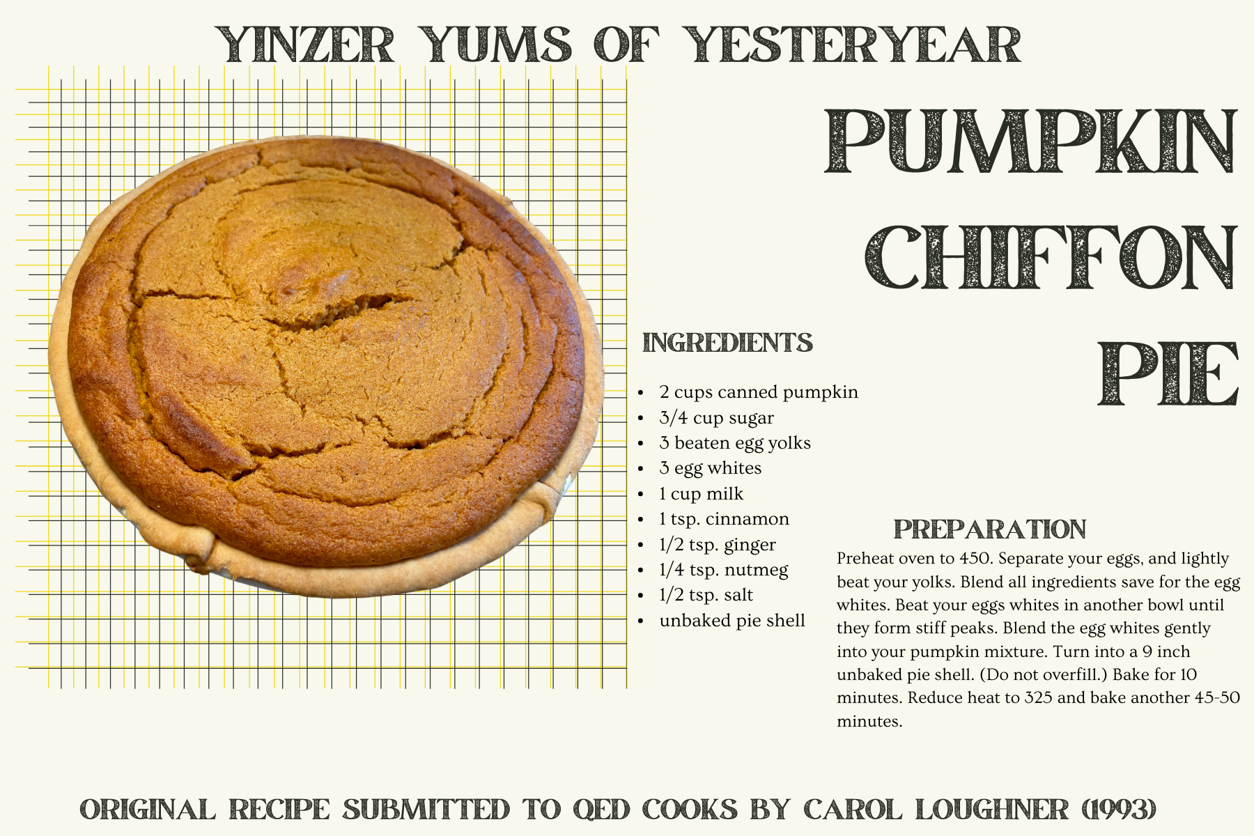 It’s fall! And since my last yinzer yum turned out to be a yinzer yuck, I chose a pumpkin spice delight from the QED Cooks collection for this week’s recipe.