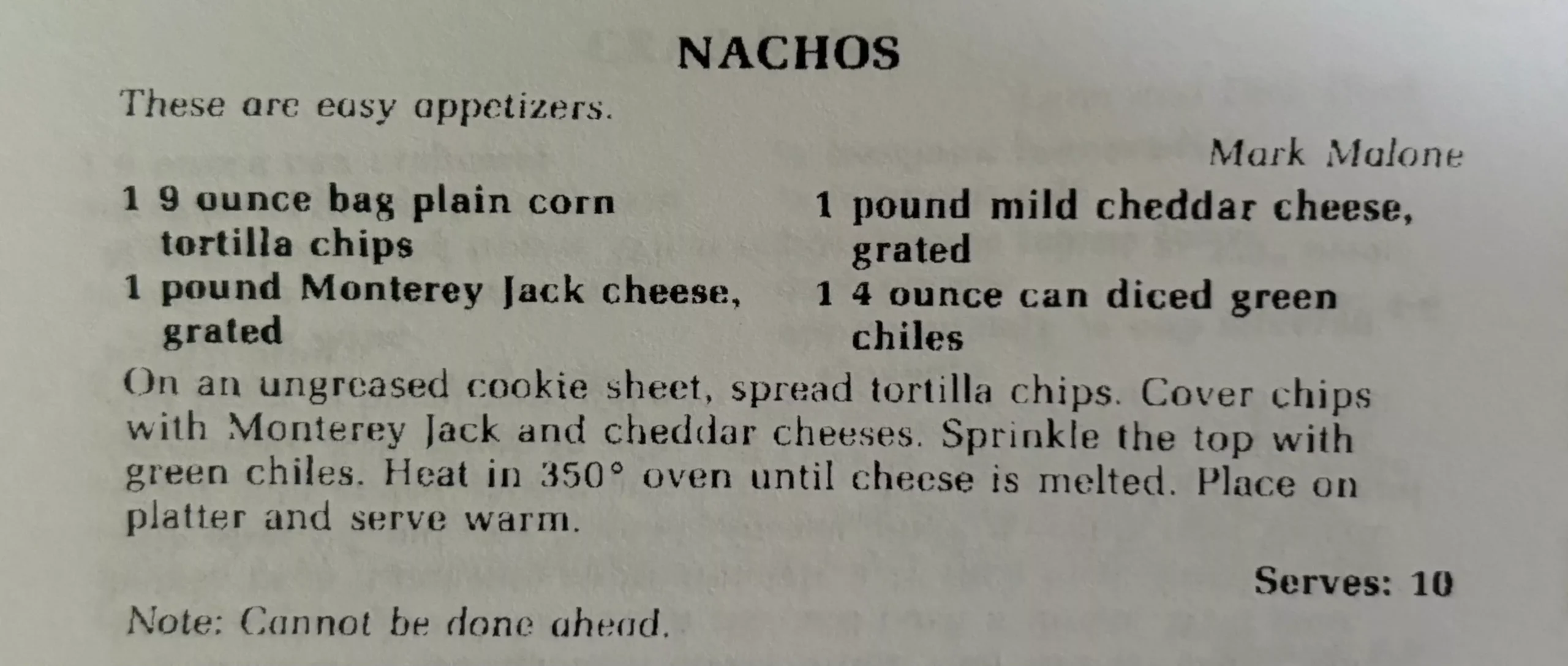 Mark Malone’s nachos are certainly a step up from the nachos I used to make as a kid, but they’re not as good as many of the recipes that exist today. However, with a few adjustments, these could be quite delightful.