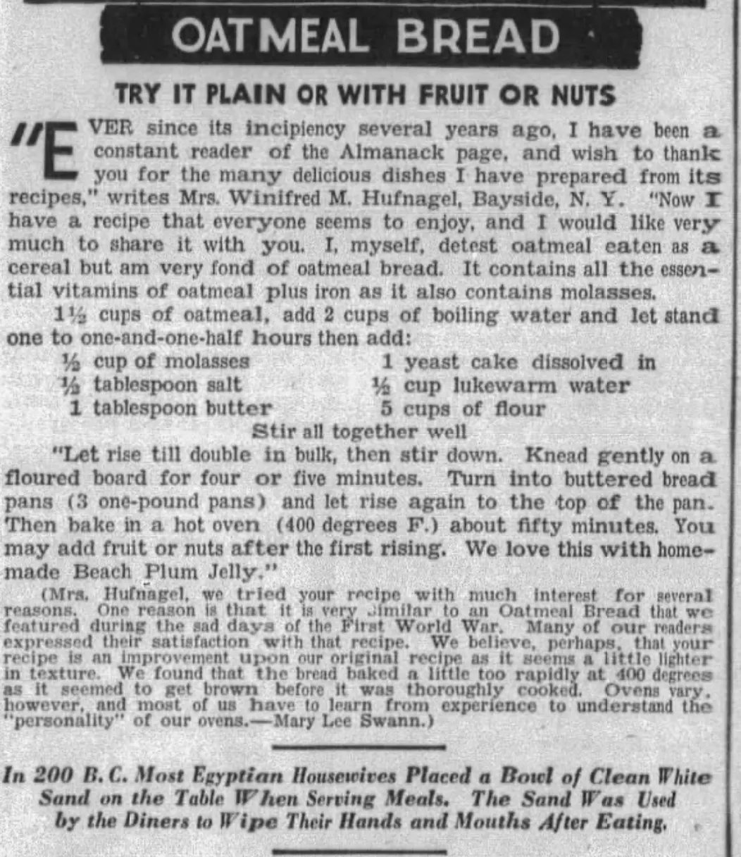 The original Oatmeal Bread recipe Credit: Newspapers.com