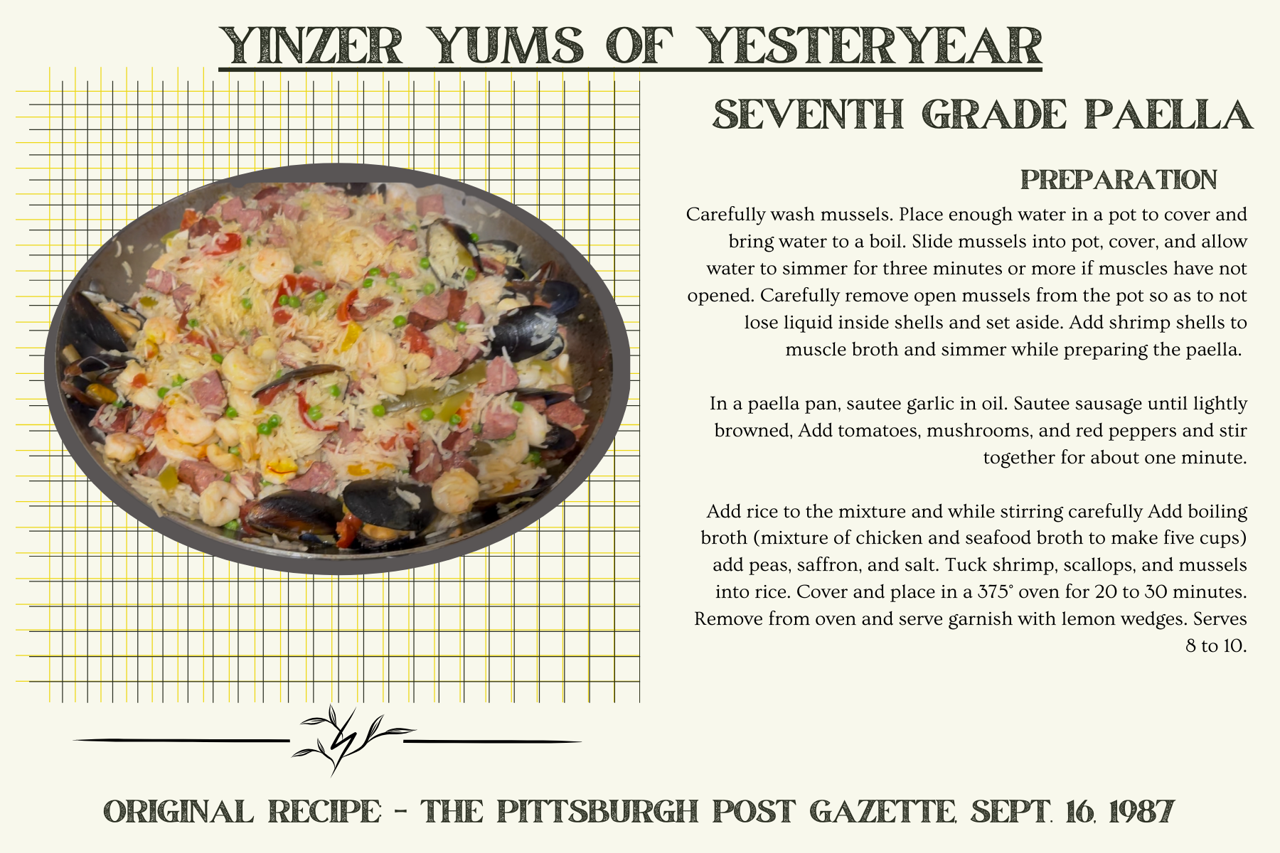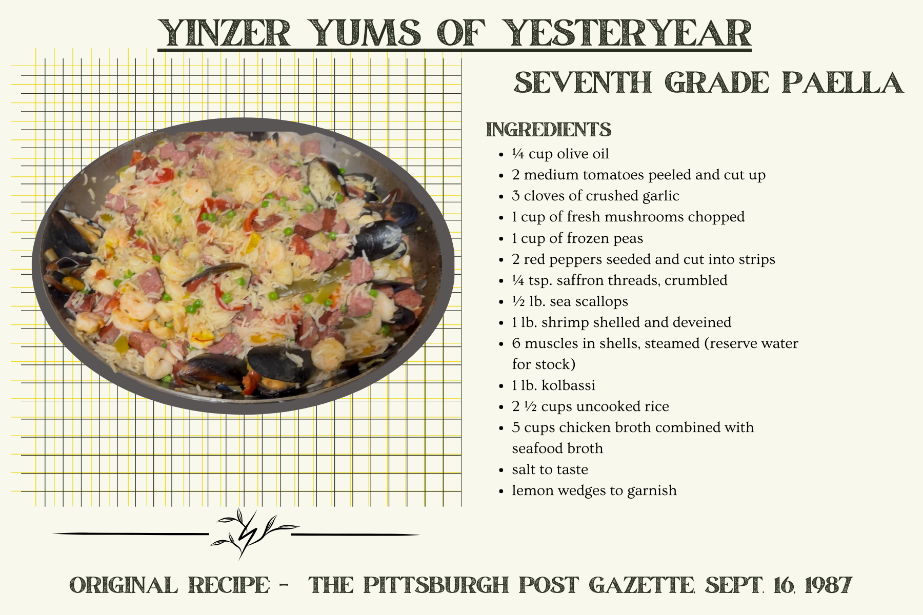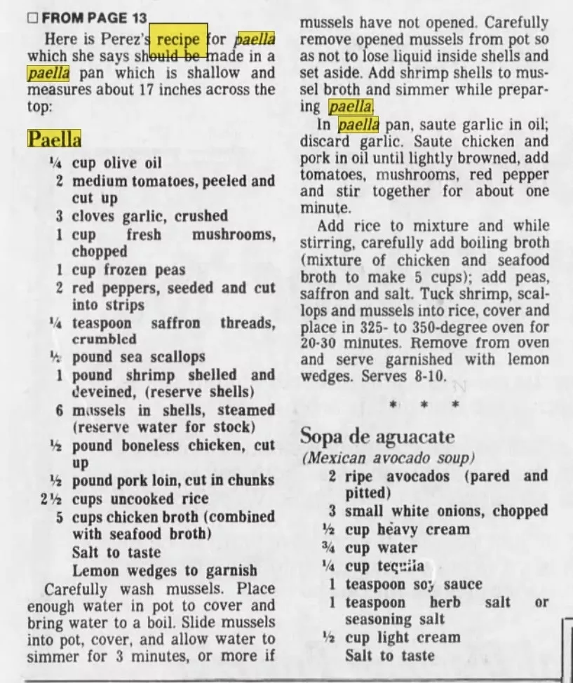 It wasn’t just me, lots of people in the good ol’ 1980s and ’90s were apparently obsessed with this dish. It didn’t take long to find paella recipes from around the same time, and printed in Pittsburgh, no less.