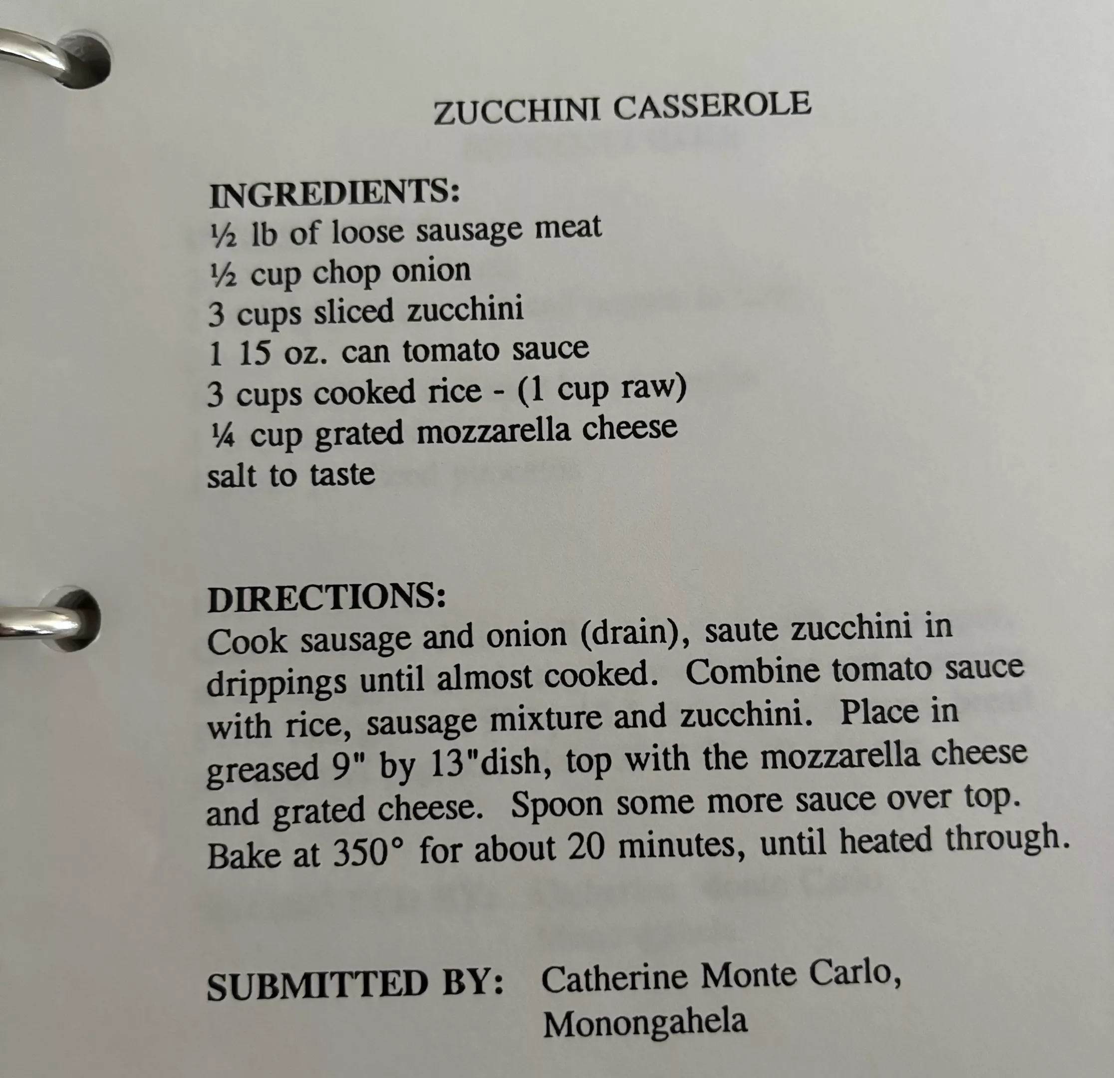There are three versions of zucchini casserole in this edition, and I chose the one that had the most simple ingredients. Since my zucchini was so big, I decided to double down on (most of) the original recipe. Who doesn’t love leftovers?