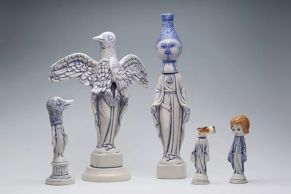Ceramic knickknacks get an artful remix in the work of Cynthia Consentino. Think porcelain madonnas with the heads of songbirds or baby dolls. Tonight, the Massachusetts-based artist, whose work has been exhibited nationally and internationally, opens a new show at Gallerie Chiz. The reception for An Anthology: Tales of Land, Sea & Sky includes an artist talk, and the event is part of the monthly FirstFriday ArtWalk on Ellsworth Avenue. The gallery will donate 10 percent of opening-night sales to the Persad Center. BO 5:30-8:30 p.m. 5831 Ellsworth Ave., Shadyside. 412-441-6005 or www.galleriechiz.com