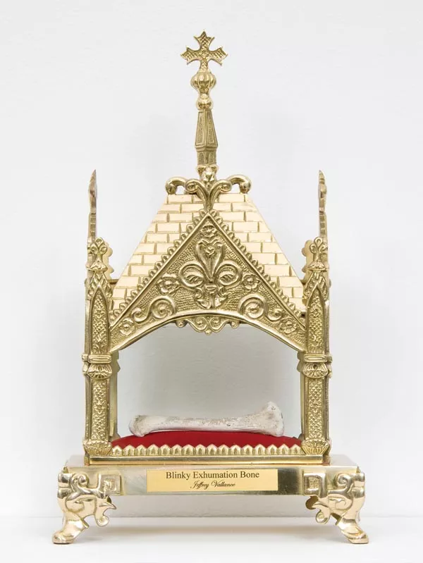 Artist Jeffrey Vallance never really knew the chicken he named Blinky; it was a supermarket find, pre-plucked. But Vallance made it a posthumous pet, formally interred it and, later, exhumed it for an autopsy. He saved one bone for a reliquary that’s now part of his installment in The Andy Warhol Museum‘s “Word of God” series. The humorous yet still somehow reverent exhibit — also including reliquaries for revered everyday objects, and Vallance’s own version of the Bible — is stop one on A Pittsburgh Treasure Sample. The Dec. 29 tour, led by Warhol staffers Abby Franzen-Sheehan and Maritza Mosquera, also visits the internationally known reliquary at St. Anthony’s Chapel, in Troy Hill — with its bones of saints and splinters of the True Cross — and Maxo Vanka’s famed anti-war, anti-capitalist murals at Millvale’s St. Nicholas Croatian Catholic Church. Vallance himself visited those sites when he was in town, says Franzen-Sheehan. The Dec. 29 tour furthers the Warhol’s mission to facilitate the discussion of controversial issues, like religion, “in a safe environment,” she adds. “It can be a little more provocative, but it’s not the person themselves in the hot seat. They’re free to talk about the art.” And the tour ends with coffee and pastries at Millvale’s Jean-Marc Chatellier French Bakery. Bill O’Driscoll 11 a.m.-2 p.m. Thu., Dec. 29. Meet at 117 Sandusky St., North Side. $15-30. Space is limited; reservations required at 412-237-8300 or www.warhol.org