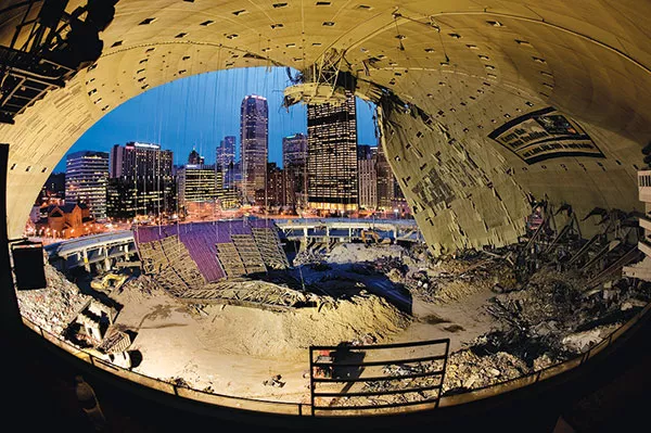 Veteran Pittsburgh-based photographer David Aschkenas has shot for publications from Time and Men’s Health to Der Spiegel, and his work is held in collections including the Carnegie Museum of Art’s. In 2010, he turned his lens on the Civic Arena, during its year-long demolition process. A few of Aschkenas’ 10,000 images of the now-vanished landmark comprise Arena: Remembering the Igloo, an exhibit that opens today at 707 Penn Gallery. (There’s also a book of the same title.) The images range from dramatic night-time shots of the Igloo’s half-demolished dome to forlorn views of the Penguins’ abandoned locker room. Tonight is the opening reception. BO 5:30-8 p.m. Exhibit continues through March 2. 707 Penn Ave., Downtown. Free. www.trustarts.org