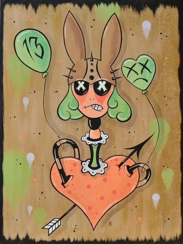 Nat Chamberlin‘s artworks have names like “Poison Hearts” and “Toxic Love Cleaver.” Her little monsters often have the round heads and short-limbed bodies of toddlers, but x’s for eyes, and mouths that snarl … unless their lips are stitched together. And they accessorize with skulls, bloody axes or ice-cream cones. The Gallery 4 hosts this local painter and illustrator’s first solo exhibition, Strange Wonderland, featuring both paintings on canvas and custom vinyl toys. The opening reception is tonight. BO 7-11 p.m. Exhibit continues through July 27. 206 S. Highland Ave., Shadyside. 412-363-5050 or www.thegallery4.us