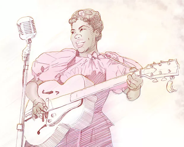 Art and empowerment join forces tonight at Wilkinsburg’s Percolate Art Space for the Girls Rocks Exhibition and Benefit. Some 60 emerging and established women artists, inspired by music, politics and feminism, contribute work to a show to aid Girls Rock Pittsburgh, which uses music-making to promote self-confidence, creative expression and more. (Works include Sam Thorp’s drawing of rock ’n’ roll pioneer Sister Rosetta Tharpe, pictured.) The show runs all month; Percolate will donate to Girls Rock a portion of the commission from all work sold during the exhibition. Tonight’s opening reception also includes a raffle. Bill O’Driscoll 6-8:30 p.m. 317 S. Trenton Ave., Wilkinsburg. 412-477-4540 or www.facebook.com (“percolate art”)