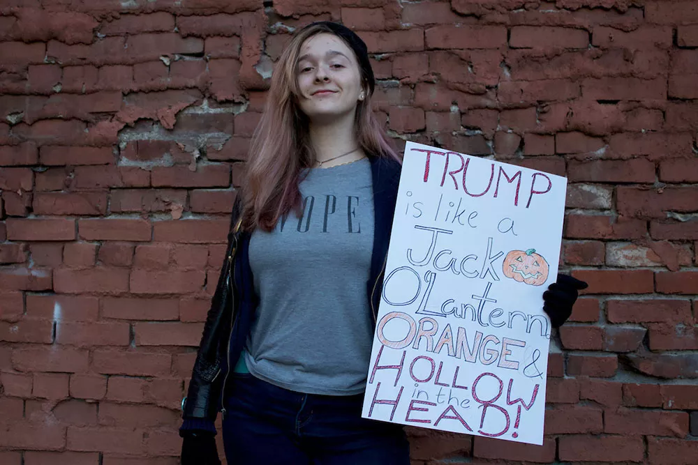 During protests today against President Donald Trump’s visit to the Shale Insight conference in Downtown Pittsburgh, Pittsburgh City Paper photography intern Joie Knouse documented the day’s events through portraits of protesters carrying signs.