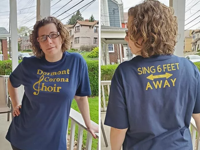 After videos of Italian citizens singing from windows and balconies during quarantine went viral, the community-bonding trend has gained momentum across the world. Here in Pittsburgh, the most popular Porch Singalong title belongs to the Dormont CoronaChoir whose members have been singing together from their porches, and over Zoom, every Sunday evening for the past five weeks. How serious are these singers? The group has had custom T-shirts made, and songs are selected by vote on their Facebook page. But they still have a sense of humor. This week’s songs were by no other than Weird Al. Search “Dormont CoronaChoir” on Facebook