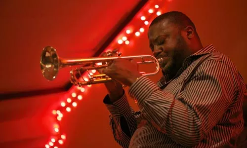 Jones hung up, thinking it was a prank. But Marsalis called back and blew a complex trumpet lick into the phone for proof. When Jones apologized, Marsalis not only forgave him, he invited the younger trumpeter to visit him the next time he came to New York. Jones wound up in New Jersey attending Rutgers University, where he earned a master’s degree in music performance, with an emphasis on jazz. But “it took me a year to call [Marsalis] up,” Jones says. “I was so terrified.”