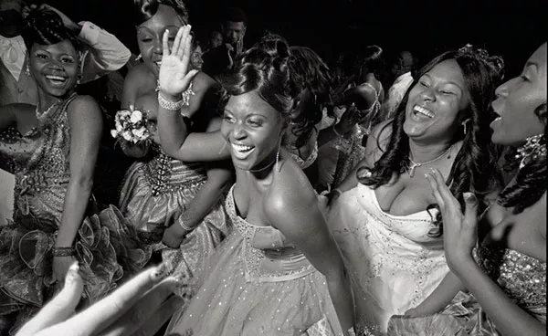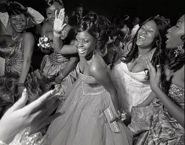 It’s apparent enough why one might gravitate toward including so many such shots: When poking at class distinctions, racial privilege and economic disparity, on their respective dance floors, the contrast between one group and another is glaring. Taking an image of a posse of moneyed London bankers and brokers glowing golden with affluence and setting it catty-corner to a now-shuttered South Side nightclub is irresistible, if maybe a little easy. Forgivably so: In the twin seas of writhing humanity — one with platinum jewelry, platinum cards, expensive haircuts and bespoke suits, the other with oversized gold trinkets, pockets full of cash, cheap tattoos and wearied Spandex — each features a red-dressed Aphrodite standing tall front and center. But we don’t need four more shots of clubs and proms and raves, and we feel a little cheated that we were denied more range when presumably it was available.