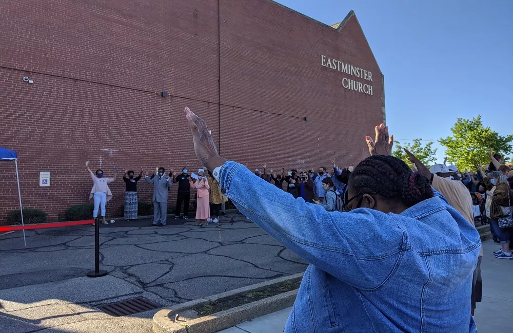 Reverend Nicole Porter of Eastminster sang a gospel piece by Thomas A. Dorsey, while others called for community action, moments of silence, or prayers for the family of Floyd, as well as for the families of other Black American men who have been killed by white law enforcement since 2018.