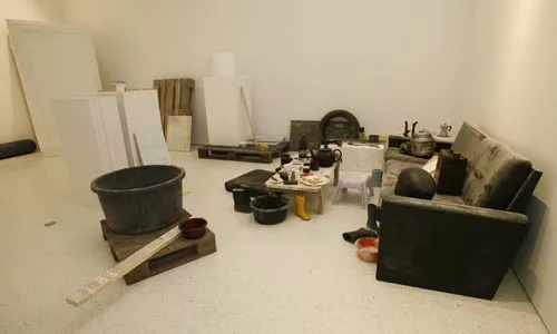 Hirschhorn’s cave may be as close to political commentary as the show gets, Fogle surmises, “or maybe this new film by Phil Collins, which I haven’t seen yet.” (The film — which was shot in the former Yugoslavia — is one of a half-dozen works commissioned specially for the show.)