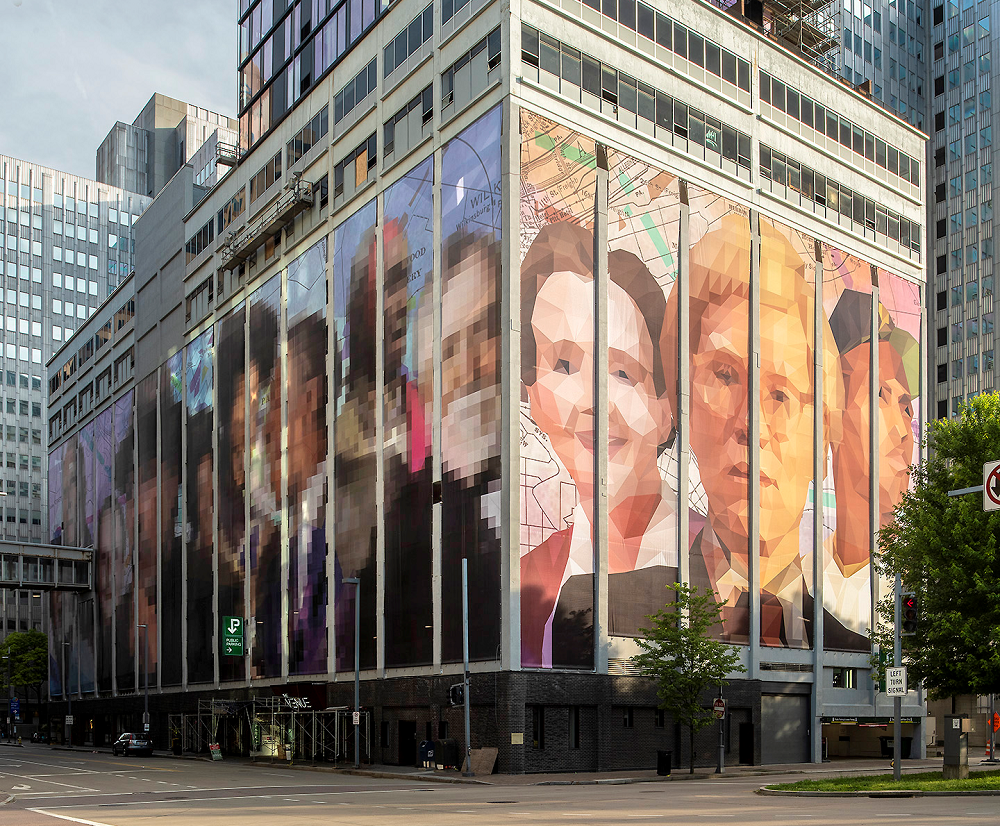 The City of Pittsburgh unveiled We Are Pittsburgh, which transformed the façade of the 625 Stanwix Street parking garage into a visual tribute to famous Pittsburgh-born industrialists, artists, musicians, athletes, and others who made significant contributions throughout history. The project was submitted and designed by Joshua Chang and Aaron Ramon, who state that the key concepts of We Are Pittsburgh are “History, Togetherness, Pride, and Color.”