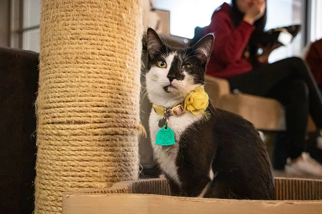 According to owner Sue Hendrickson, most of the cats are older rescues who often get overlooked at the shelter. Humans can reserve a one-hour visit for $8 per person, with discounts on Thursdays for college students with a valid school ID. And if you’re tired of the cubicle life, three-hour blocks are available for “co-working with cats” for $20.
