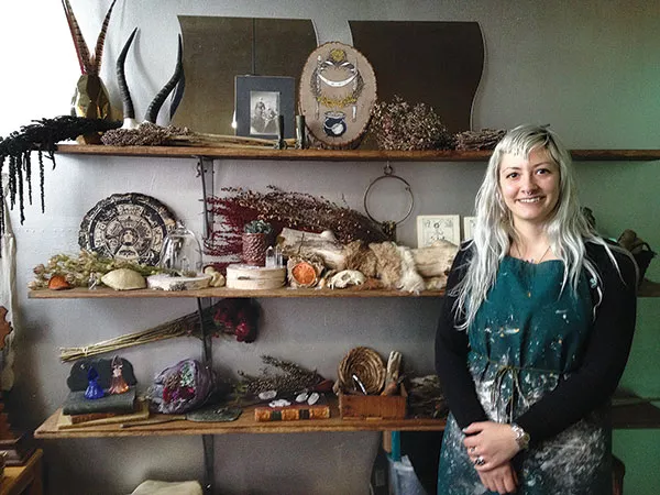 A track from Sisters of Mercy plays quietly, but persistently, from her MacBook. The faint scent of incense hangs in the air. Rozzi is in the process of creating the screen prints that will be featured in her first solo show, at Artisan gallery, in Garfield. Her art — which most often takes the form of sparse, haunting illustrations and screen prints — focuses on the subject matter and symbolism associated with pagan history, alchemy and the ways witches have been portrayed in different cultures. Her show will focus on May Day, the tradition that celebrates the arrival of spring.