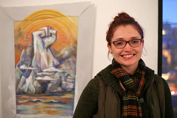 On Feb. 16, Randi Stewart, of Turtle Creek, delivered her mixed-media painting of a mountain that’s a raised fist in front of a rising sun. Stewart, 29, said she hadn’t marched herself but was inspired by protesters. “We’re seeing the results of actively speaking out and speaking up,” she said. “It’s the most empowering period of my life.”