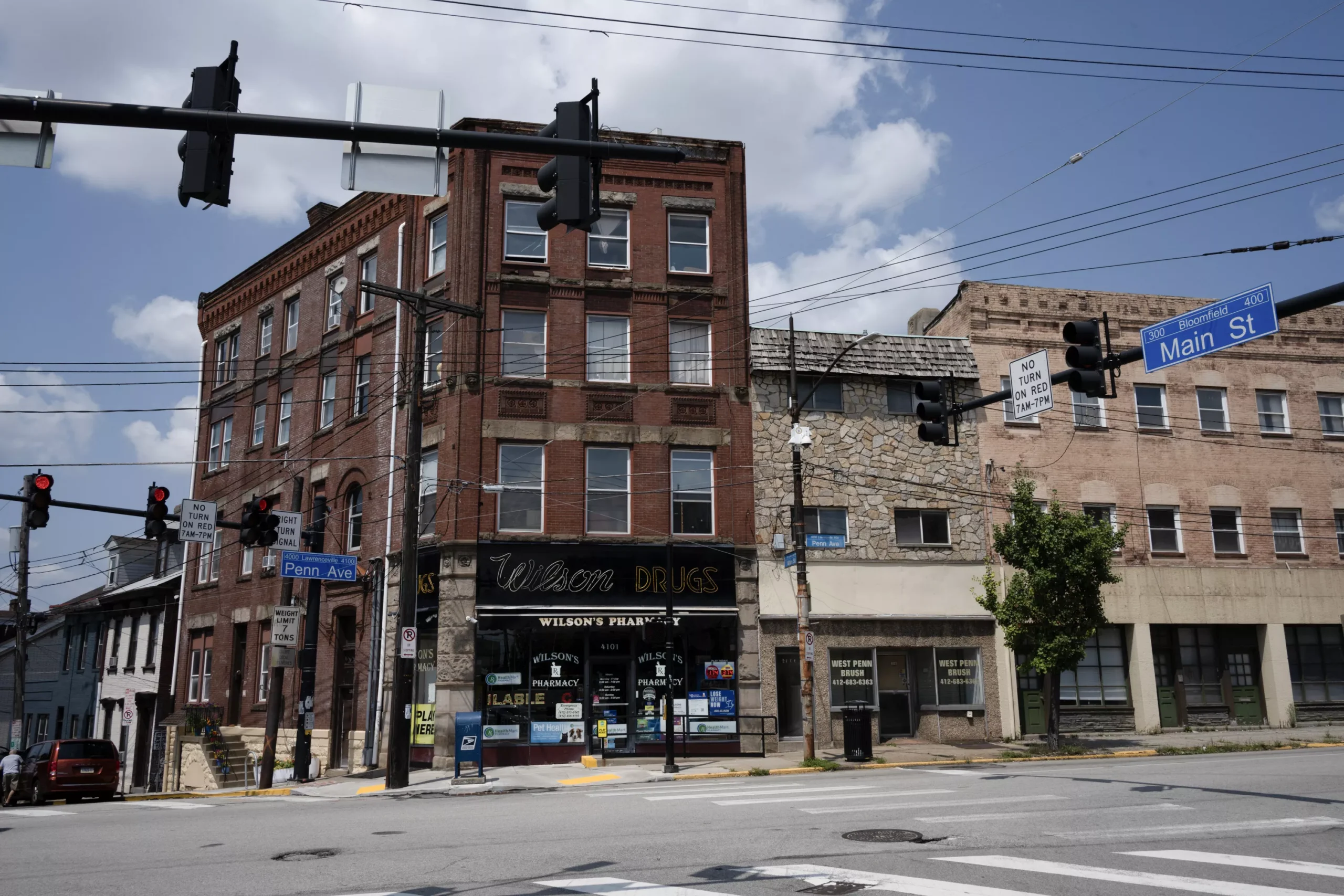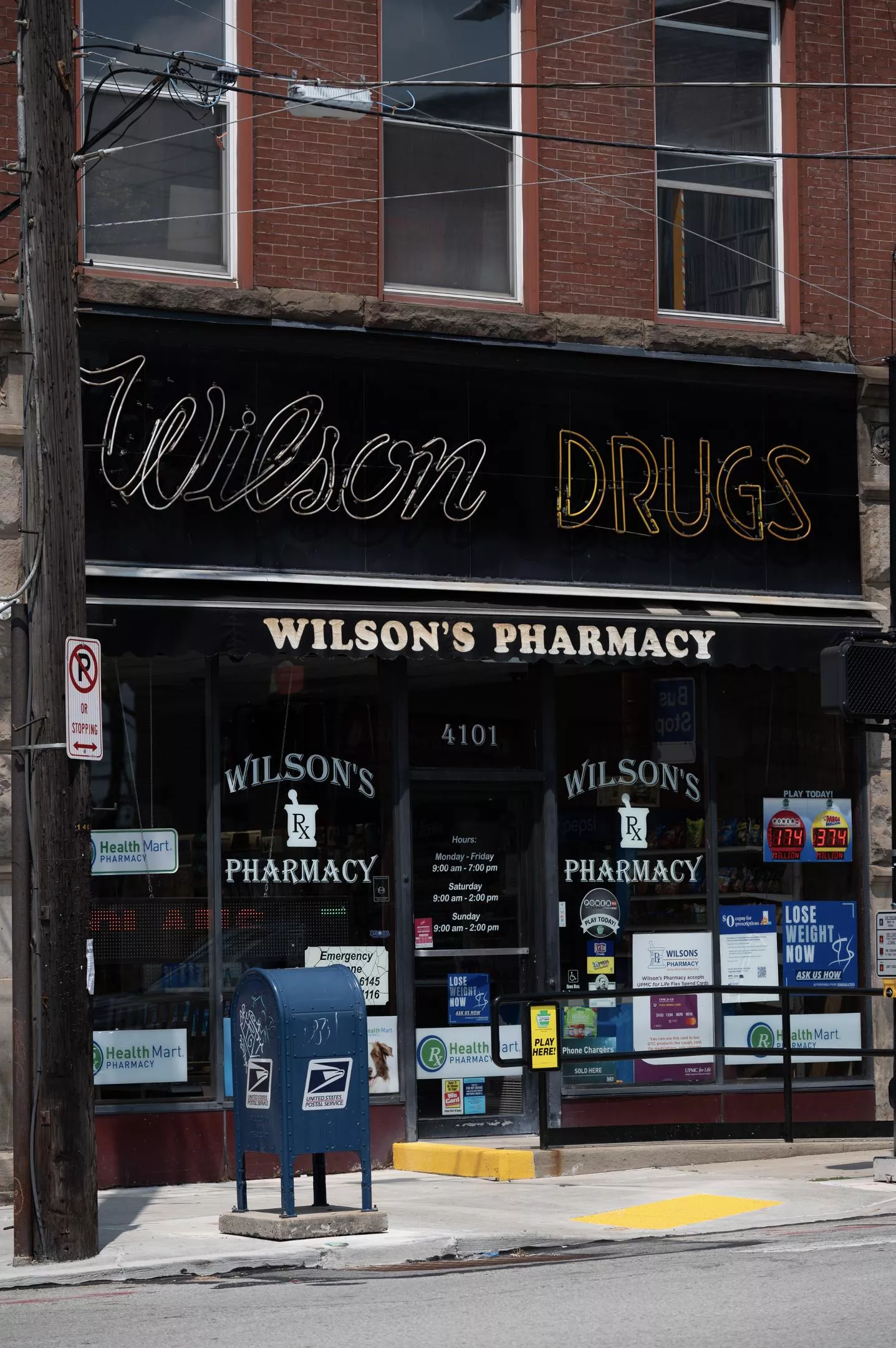 Wilson’s Pharmacy, aka Wilson Drugs, is a place out of time at the heart of the Penn Ave. business district between Bloomfield and Central Lawrenceville. Its unmistakable façade hearkens back to a time of trolleys and industry. Fronted by a small convenience store and located a quick walk from UPMC Children’s Hospital of Pittsburgh, this pharmacy forms part of a complete, walkable part of town where it’s possible to obtain groceries, drinks, cheese, fine dining, and art within a square mile of dense rowhomes and businesses.