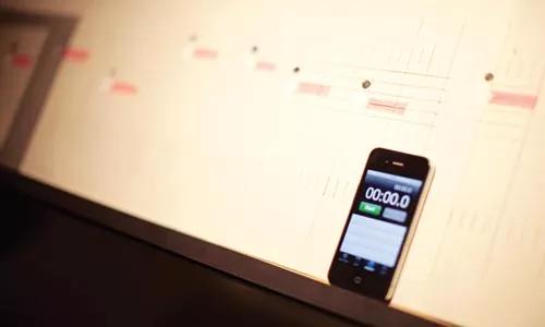 This bird’s-eye view of “Longplayer,” both in the video and on the annotated diagrams lining Wood Street’s walls, reveals that Finer has found inspiration in his position as artist-in-residence at Oxford’s Department of Astrophysics. The London stage set’s six concentric circles, the widest of which is 65 feet in diameter, resembles the simplified diagram of an atom, or a two-dimensional representation of a planet and the paths of its circling moons.