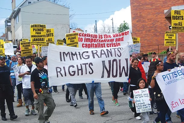 El momentum está creciendo la comunidad Latina de Pittsburgh, y es soporte está creciendo más fuerte. En mayo 1, el mismo dia de la maratón de Pittsburgh mas de 100 personas desfilaron desde Beechview a Brookline en soporte de los derecho de imigrantes. Líderes religiosos, políticos y familias latinas con niños tenían pancartas que decían “la ciudad de puentes, no fronteras” y “derechos plenos para inmigrantes.”