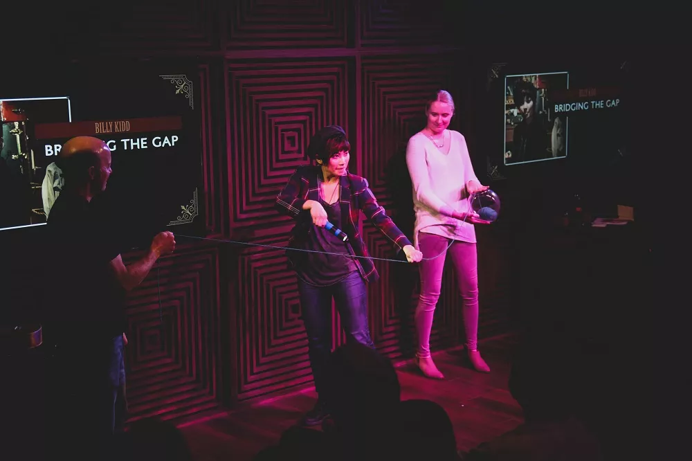 After cracking this joke, Kidd performed some card tricks and lead into more interactive tricks, including one where she took a guest’s jacket, stabbed a hole in it with a knife, and then returned it to him completely unscathed.