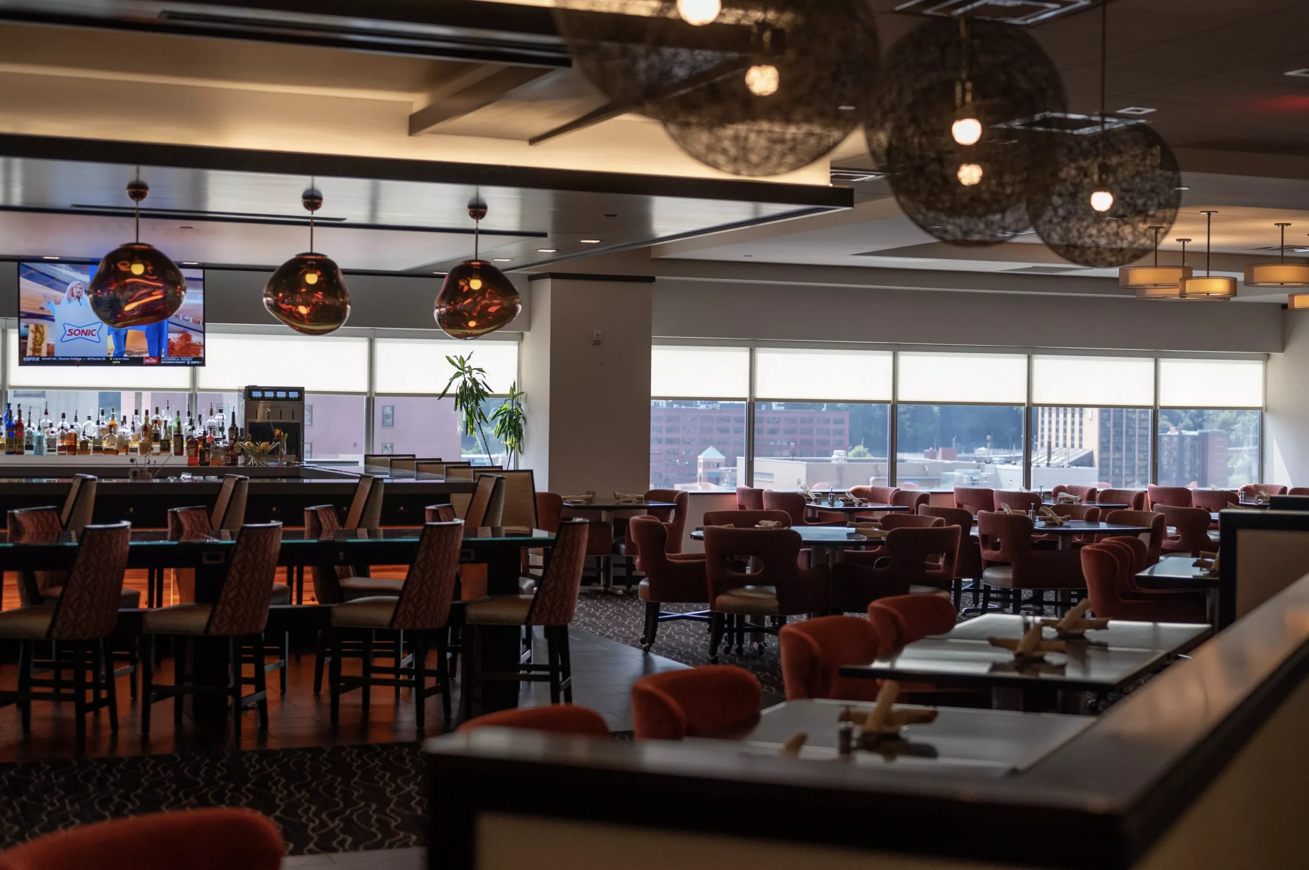 The private business and social club, owned by Dallas-based lifestyle company Invited (formerly ClubCorp), opened at One Oxford Centre in 1983. In a sense, its fate was tied to the Duquesne Club: while those members had steered Pittsburgh’s industrialization for the century prior, steel had reached an economic crisis point. Renaissance II, the follow-up to the Allegheny Conference’s original project, launched in response to rediversify the region’s economy, redevelop Downtown, and construct the 45-story tower on Grant St. that would house offices, upscale shopping and dining, and the Rivers Club. Today’s club still occupies the same location, sitting atop the Centre’s parking garage with three stories including a lobby level, an athletics floor and cafe, and a social and dining floor with event spaces and boardrooms.