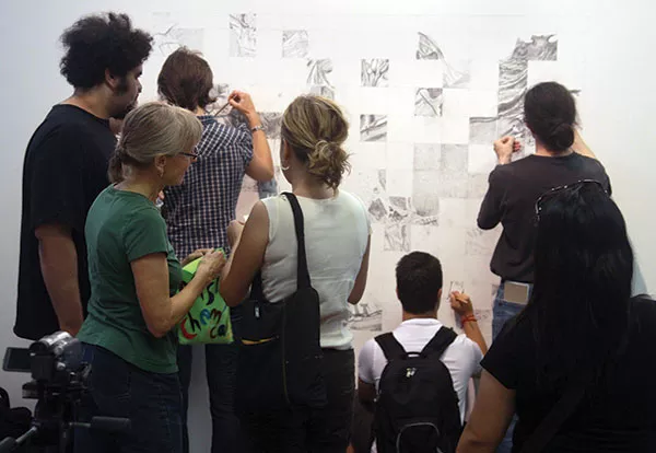 In Crowdsourced, 12 local artists were asked to draw directly on the walls of SPACE Gallery, and to collaborate with the larger public, including attendees of the July 12 opening reception. At its best, this exhibit curated by Robert Raczka (a CP contributor) is a playful excursion into new ways to do art.