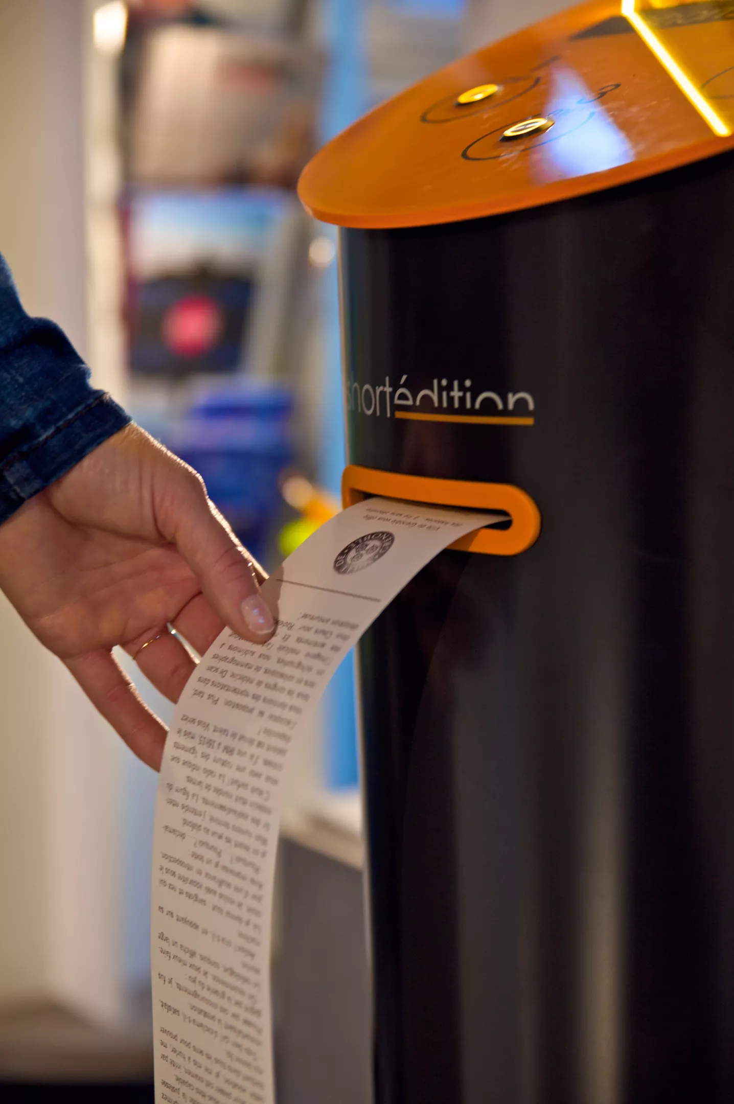 Located in the Cohon University Center, the machine at CMU allows visitors to press a button to dispense a short story written by either a professor in the English department, or an international writer selected with the help of Short Édition. The machine dispenses the story on a receipt-like, biodegradable paper, and uses inkless technology to print the words. It’s something like those tiny libraries found tucked in neighborhoods, but for the digital age.