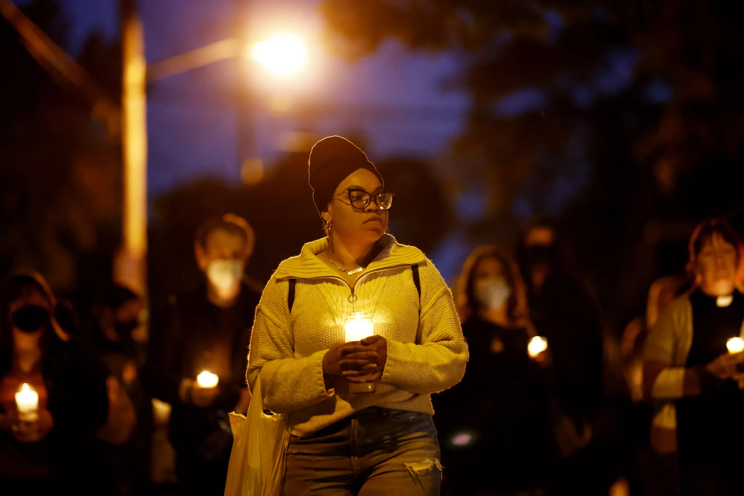 Jim Rogers’ niece, Diamond Rogers, and uncle, Billy Joe, hold hands during the candlelight vigil. Credit: CP Photo: Jared Wickerham