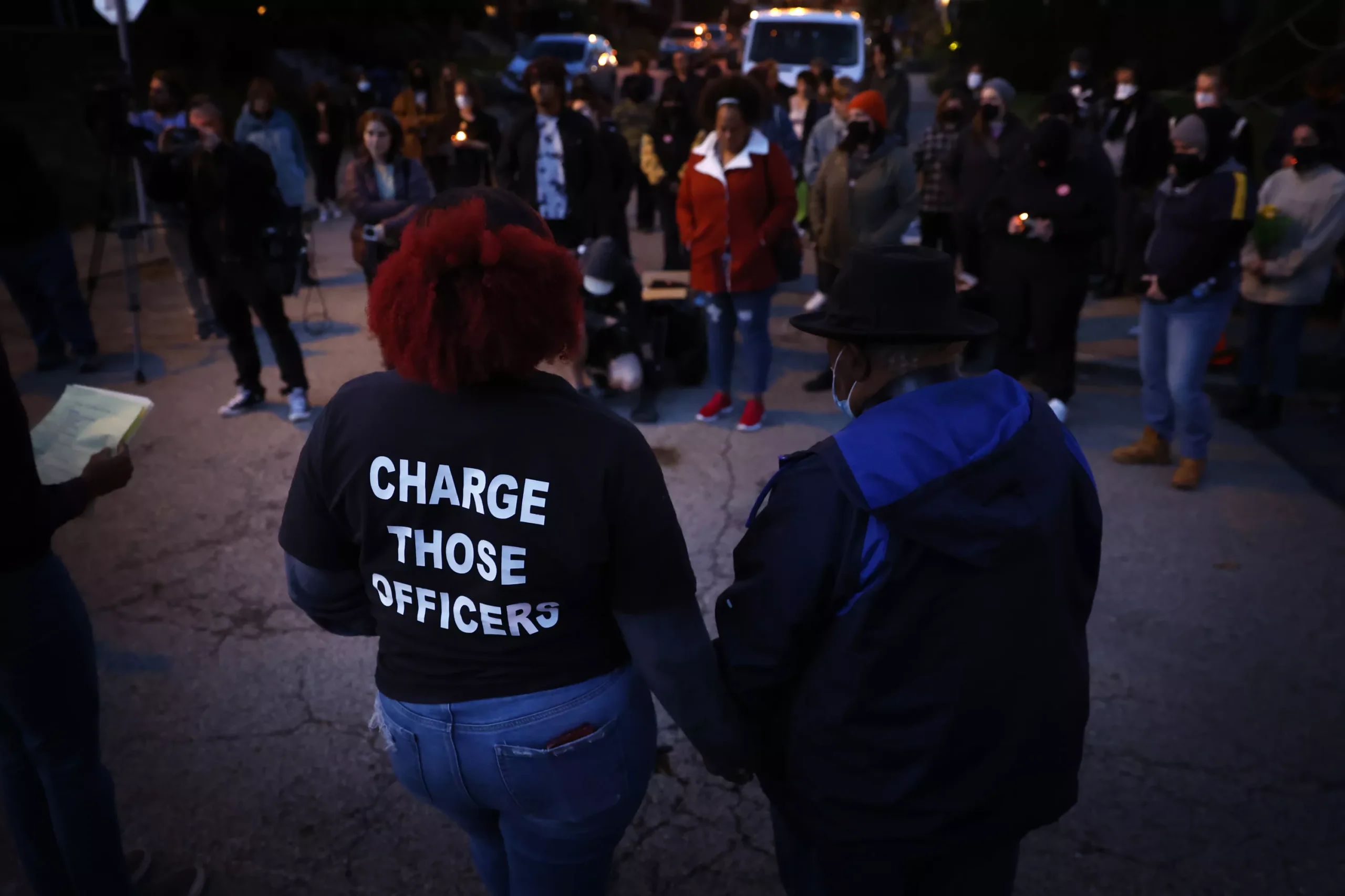 About 50 of Rogers’ friends, family, and supporters gathered in Bloomfield on Thursday night where they played his favorite music while walking to Friendship Park for the vigil. Among the supporters were Rogers’ niece, Diamond Rogers, and sister-in-law, Tiffany Hale, who both wore “Justice for Jim Rogers” shirts with “Charge Those Officers” written on the back.