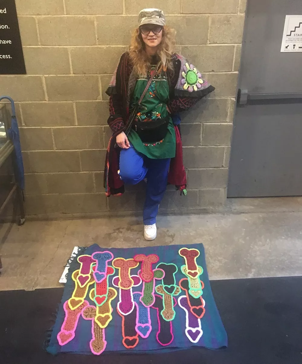 How to preserve any chance at relevance when your medium is crocheting? By making crocheted penises, of course. She, er they would be better off making some toilet-seat covers.